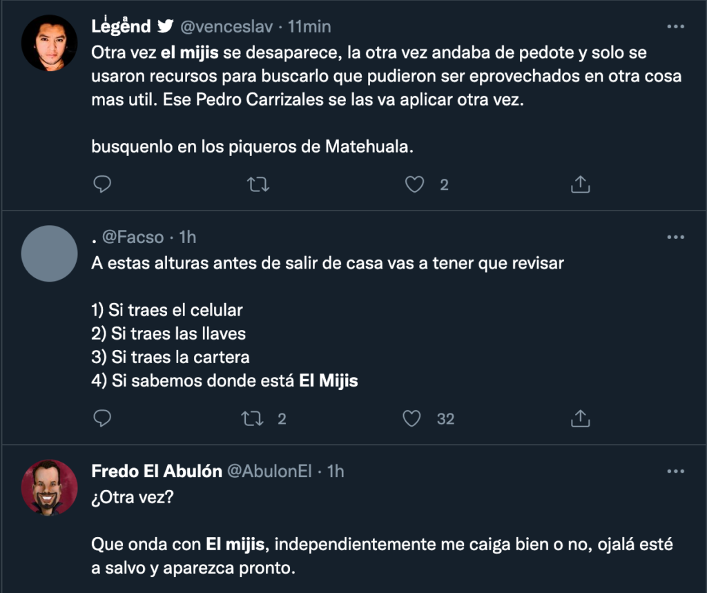 Aunque no todo es muestras de apoyo y deseos para un buen estado del exdiputado federal y ahora activista “del pueblo”, pues sus detractores se han expresado en sentido negativo al respecto y hasta memes se han hecho resaltando que no es la primera vez que el político cholo desaparece.