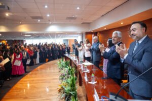 En un ambiente de celebración y reconocimiento, el Dr. Guillermo González expresó sus felicitaciones a los egresados por su dedicación y destacada excelencia académica, resaltando el apoyo brindado por el Magistrado Presidente Guillermo Valls Esponda y la Comisión para Coadyuvar a la Formación, Profesionalización y Especialización del TFJA.
